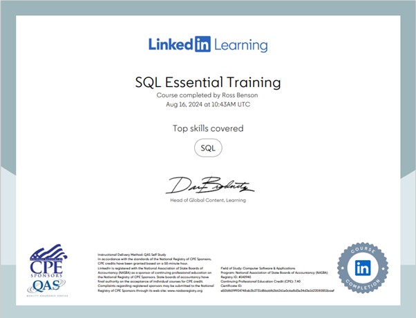 I’m pleased to announce that I’ve just completed a comprehensive SQL course, which has been incredibly beneficial as I work towards becoming a Graduate Business Analyst.